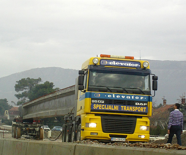 Tokom godina, Elevator je pružao usluge mnogim preduzećima u Crnoj Gori, Albaniji, Kosovu i Bosni. Takođe smo učestvovali u mnogim projektima kao što su izgradnja mostova, građevinski radovi, transport specifičnih tereta itd.